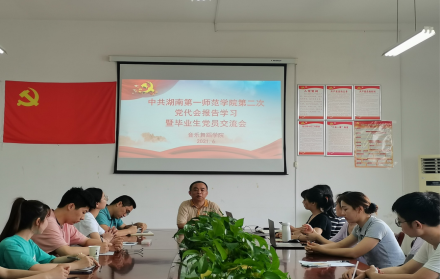6月2日下午两点半,学生党支部在学院党员活动室举办《湖南第一师范学院第二次党代会报告》学习暨毕业生党员座谈会。学院总支书记谭顺来解读学校党代会报告,辅导员邓志刚、何忠华和60余名学生党员参会...