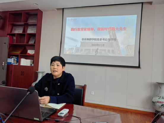 2024年03月05日11月14日下午,音乐舞蹈学院贯彻习近平总书记重要讲话精神和中国工会十八大精神的集中学习研讨会在会议室举行,院党委书记、分工会主席邹华秀作主题报告,全院教师参加了会议。邹华秀书记强调了充分认...