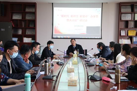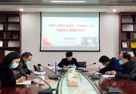2022年04月06日3月31日14时,学院党委中心学习组在鹤鸣楼(北)会议室举行“新时代、新师范、新使命”办学思想大讨论集中学习活动。院党委书记邹华秀主持学习活动。学院党政班子全体成员、各党支部书记、各系主任、各...