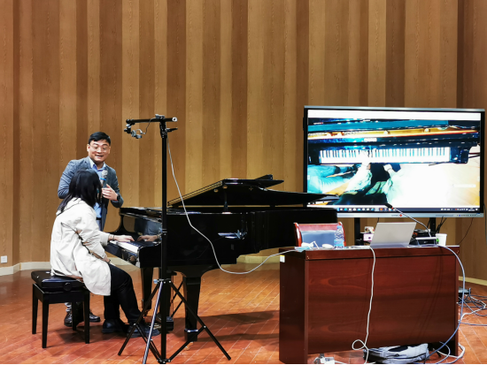 此次讲座钢琴教研室邀请了中国音乐家协会会员、涉外经济学院骨干教师、湖南省青年高校教学能手、第九届中国金钟奖流行演唱湖南赛区金奖获得者彭翔老师,针对我院19级音乐学、音乐学(初招)专业的学生,围绕中小学音乐教材歌曲的钢琴即兴伴奏有关知识、方法和实践进行了一场生动的学术讲座。