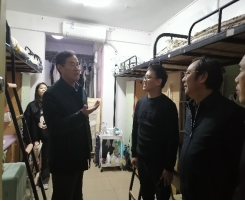 在学生寝室,江校长询问学生在生活上、学习上有什么困难,了解学生的学习情况和发展规划。他表扬学生们在文明寝室建设活动中按照“六进”公寓的要求,营造出了干净整洁的生活学习环境。