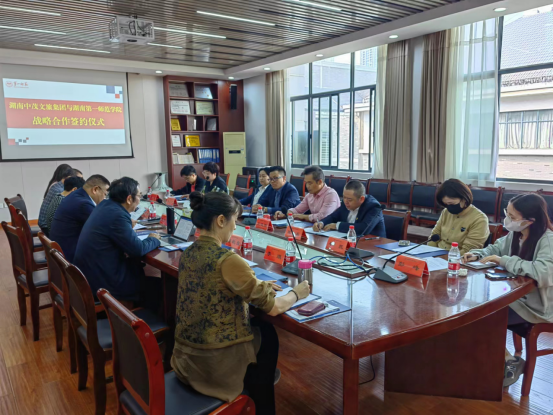 项目双方代表分别畅谈了合作的具体设想。系主任郭宇就音乐学系专业建设情况进行了简单介绍,就双方合作的内容与基本原则阐述了自己的想法。中茂文旅集团战略顾问文连阳博士主要介绍了短中期可直接开展的项目及远景项目规划。中商联媒购文员会直播师在线培训考核平台湖南中心负责人陈兵提出了一个目标、三聚焦与三抓实的合作思路。他指出,一个目标就是要把此次合作打造成校企合作的经典样板,要聚焦红色、聚焦已有项目、聚焦文创,抓实合作框架、抓实合作机制、抓实“非遗项目”的落地。