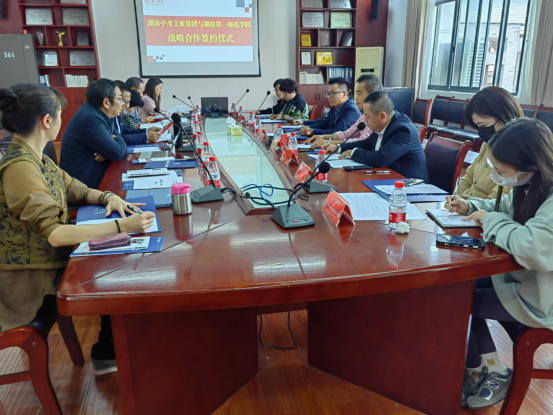 赵奇钊处长代表学校对此次合作给予了积极评价并提出了三点具体要求。他指出,一是要唱响“红”字,传承好红色基因。要充分挖掘红色资源打响红色一师品牌,让“星星之火”在三湘大地成燎原之势。二是要坚持“绿”字,即要有利于服务农村,其核心就是要坚持把学科发展与服务于乡村振兴、服务于中小企业发展相统一,有利于提高农村居民的生活品质。三是要解决好“难”字,高校与企业的合作不是一朝之功,社会与企业是我们人才培养的老师,我们要为企业培养合格的人才,这次合作要携手共进、坚持合作共赢的原则,要做实、做牢、做出效益,实现合作共赢的良好局面。