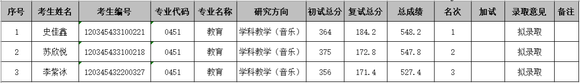 湖南第一师范学院音乐舞蹈学院2025年硕士研究生一志愿复试成绩及拟录取名单公示