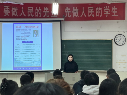 讲座中,杨曙光教授强调了中西声乐技巧融合的重要性,她表示:在演唱过程中,声音技术方面要注重借鉴西方声乐共鸣腔体的运用,但在语言咬字上则是尊重汉语言咬字规律,使腔词关系与音乐旋律及传统审美相符合,以此达到多元的声音色彩、丰富的音色来表现多样的意境和情趣。此外,杨曙光教授从“如何唱好歌”这一方面进行论述,她强调练声在声乐教学中的重要性,并从哼鸣练习、元音转换练习等训练方法中分别展示正确与错误两种案例进行对比示范,让大家能更直观的感受到两者之间不同的演唱效果。