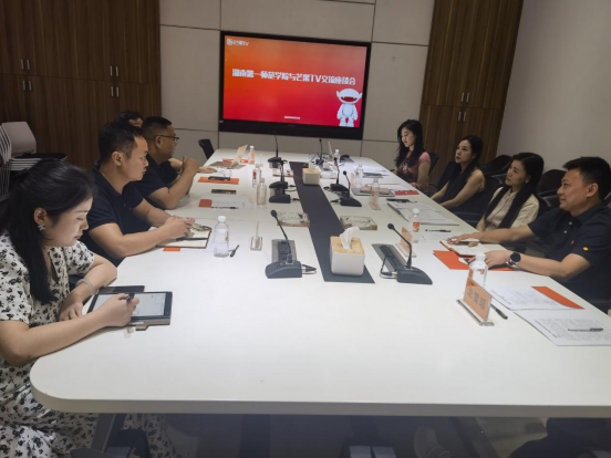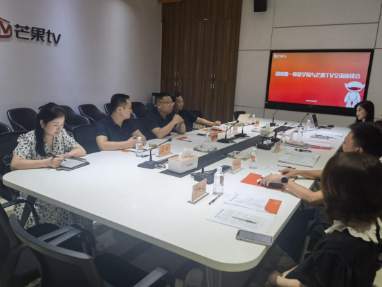 2023年6月21日下午15:00,湖南第一师范学院与芒果TV交流座谈会在芒果TV西附楼101会议室举行。湖南第一师范学院产教融合与校企合作处处长赵奇钊、音乐舞蹈学院院长张应华、副院长刘炜、芒果TV人力资源中心高级总监蒋佩纹、宣传管理中心副总经理盘剑、影视中心高级副总监吕含石、人力资源中心总监龙雪瑶、招聘培训部负责人邓丽瑶等部门领导出席本次交流座谈会。