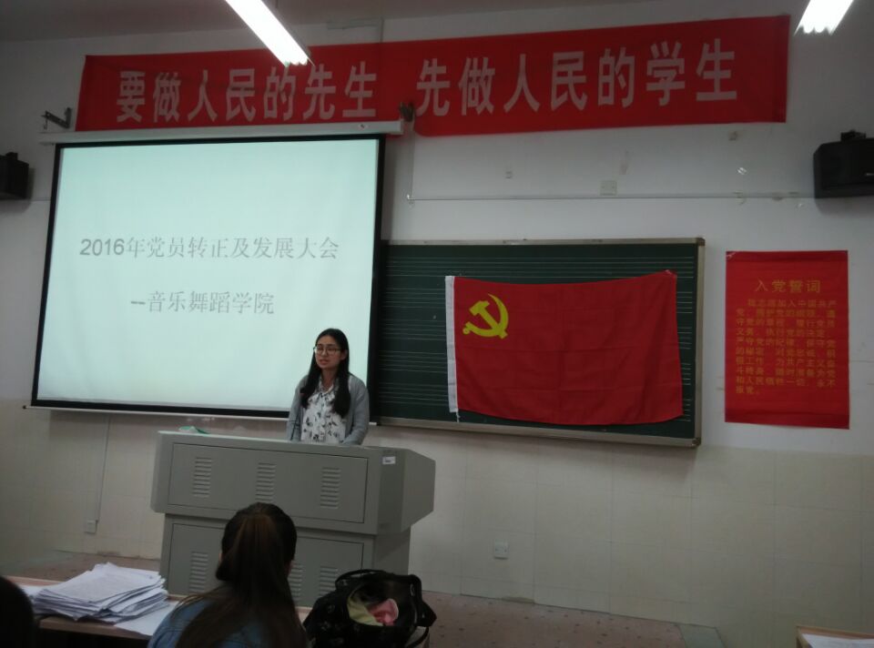 2016年5月29日下午2点30分,我院学生党支部党员发展及转正大会在艺术楼303教室举行。会议由支部副书记戴紫嫣主持。