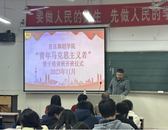 11月15日,我院在鹤鸣楼北303教室举行“2023年青年马克思主义者培训班”开班典礼,院党委书记邹华秀、副书记谭小红、全体辅导员及一百余名学生干部参加仪式。院学工办何睿老师担任主持。