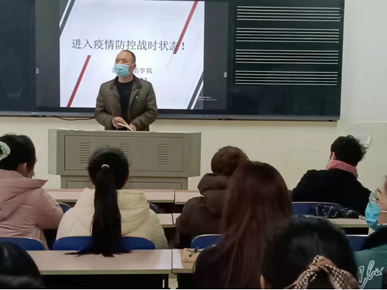 3月22日下午,我院在鹤鸣楼北305教室召开主题为“进入疫情防控战时状态”的学生防疫工作推进会,院党委书记邹华秀、副书记谭小红、全体辅导员、各班班长和团支书参加会议。会议由谭小红副书记主持。