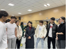 讲座结束后,邹华秀、谭小红和全体辅导员一起走访学生寝室,了解在寝学生的学习情况、卫生情况,听取学生开展公寓思政小课堂的想法。从学生寝室出来,邹华秀一行又来到舞蹈排练室看望正在排练毕业晚会节目的学生,肯定学生们“艺精于勤”精神风貌,叮嘱学生劳逸结合,按时休息。