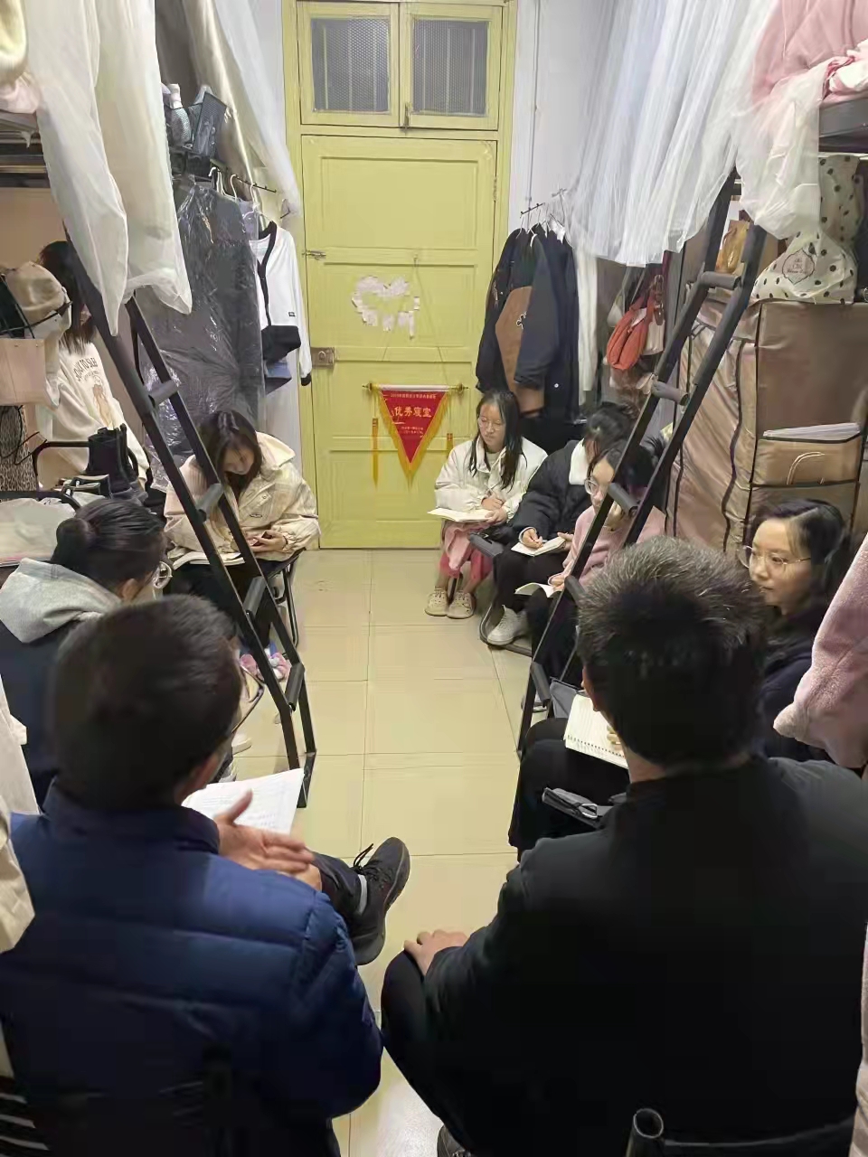 为切实落实学校“六进公寓”,12月1日晚,我院党委委员、党政办主任杨乾良在辅导员曾亚斌的陪同下在10栋222寝室组织19级舞蹈班和舞表班发展对象进行了一场谈心式的“思想引领教育”。杨老师从学生应树立远大目标、胸怀天下而志于学,再谈到十九届六中全会关于“四个飞跃”的论断。杨乾良老师结合四个时期的鲜活历史,从新中国如何站起、站稳、站好,如何从一穷二白到温饱、总体小康、全面建成小康,如何从文化自卑到自省、自信三条主线深入讲解了“四个飞跃”的深刻内涵与伟大意义。最后,杨老师号召同学们一定要树立远大目标,自信自律,为民族的伟大复兴努力刻苦学习。