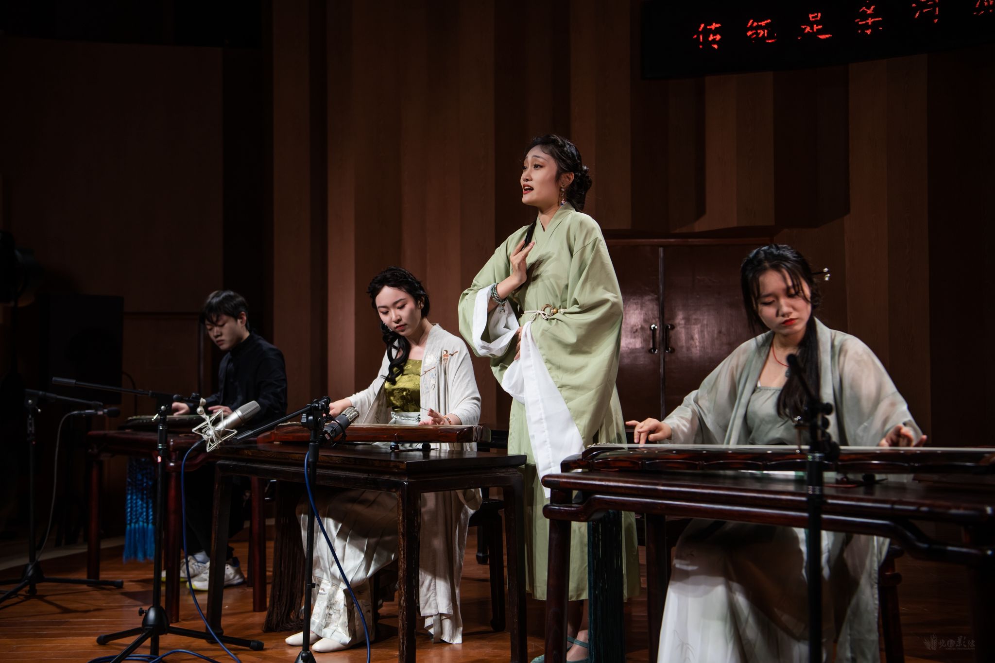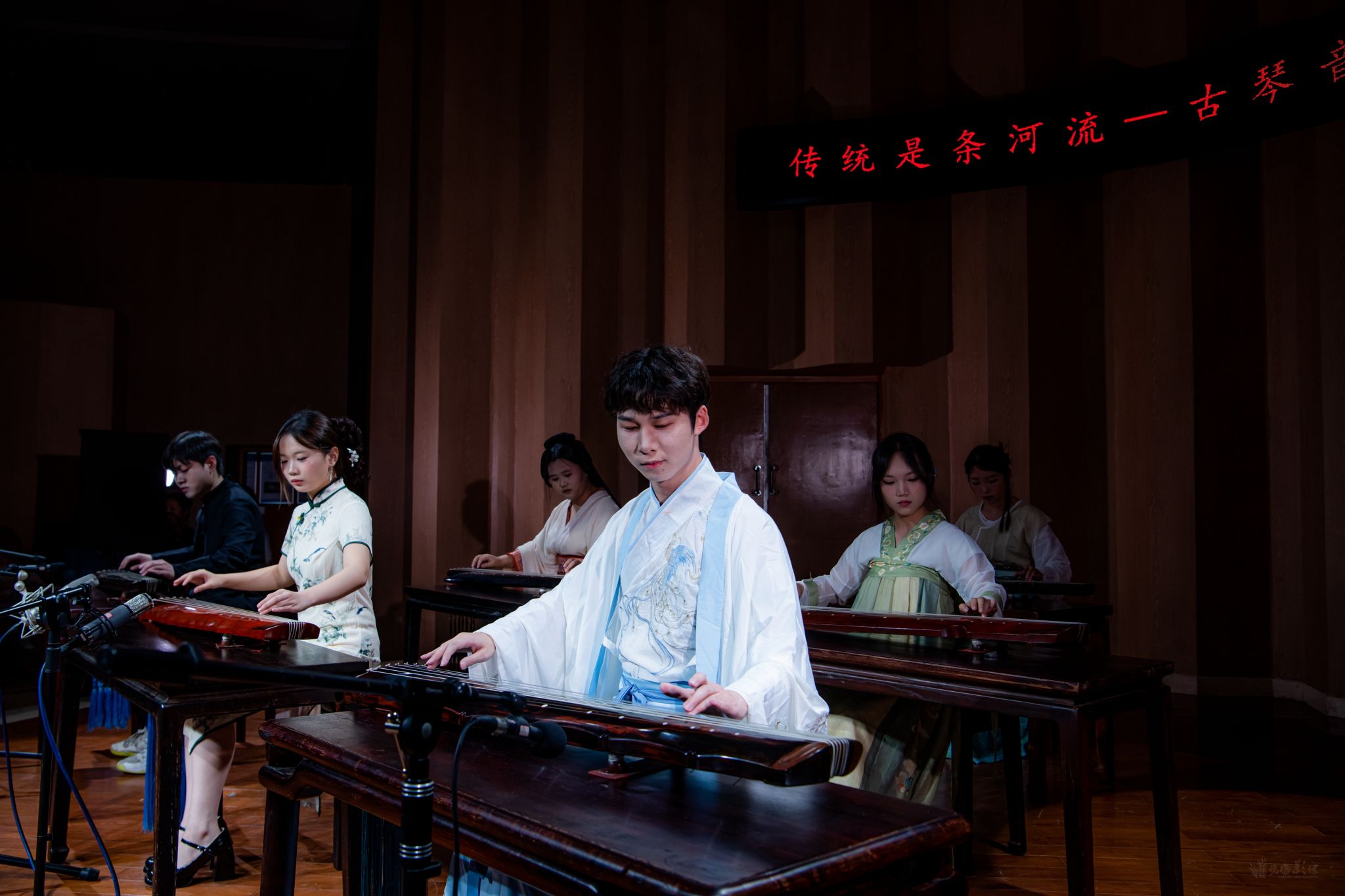 演出中,观众跟随琴声穿越时空,感受古琴艺术“在坚守中创新”的魅力。这种协同育人模式不仅为学生提供了沉浸式学习场景,更通过文化空间的社会辐射力,推动古琴艺术从校园走向大众,实现了传统文化传承与育人实效的双向提升。