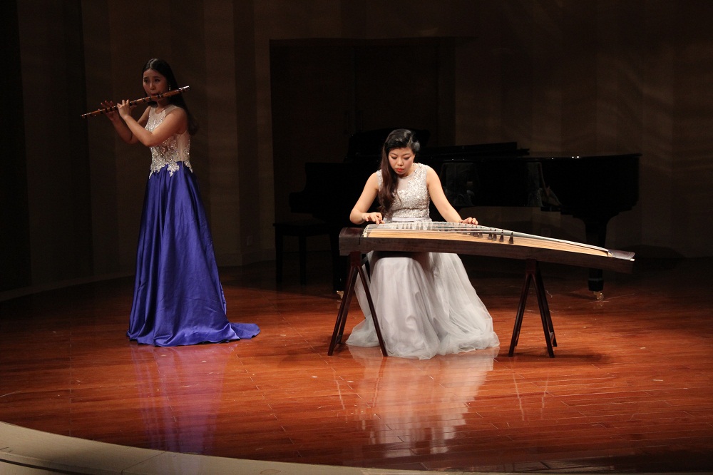 当晚音乐会形式多样,有蔡宛彤的竹笛独奏、郭沁的古筝独奏、也有竹笛和古筝合奏。