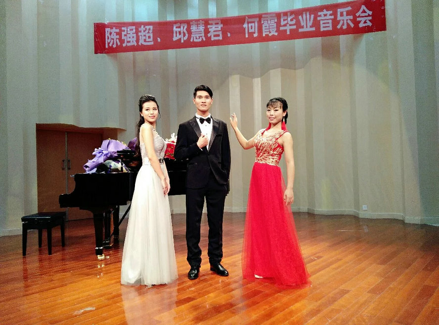 2015年5月29日晚7点,我院陈强超、邱慧君、何霞在艺术楼音乐厅举办本科毕业声乐音乐会。本次毕业音乐会考试评委为殷仕琳、龙亚君、许启雪三位老师。肖湘愚校长和指导老师李小君院长莅临了本场音乐会。