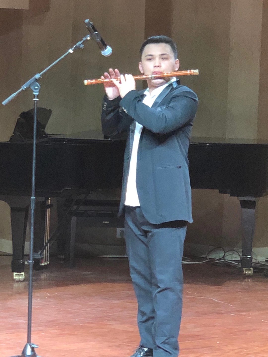 器乐展示部分由钢琴独奏《肖邦—谐谑曲No.2Op.31》、单簧管五重奏《瑶族舞曲》、古筝合奏《蹀马倾杯舞千秋》及笛子独奏《春到湘江》组成,不同曲风、不同乐器的节目展示了器乐方向学生多元、丰富的音乐表现力。