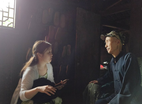 (黄葶老师带领学生走访省级“非遗”传承人向盛福老爷爷)