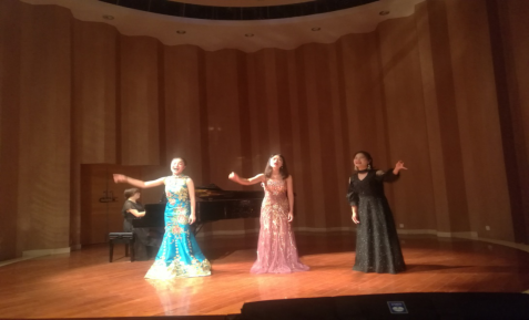 (18音乐学2班赵丽雅、郑怡心、790班杨羿、17声乐辅修李雅婷演唱《赛吾里麦》)