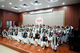 12月15日下午,由湖南第一师范学院音乐舞蹈学院和湖南省音协手风琴专业委员会主办的湖南省高校手风琴专业研讨会与专场音乐会在城南书院多功能报告厅成功举行。下午2点,音乐舞蹈学院副院长廖小芒教授致欢迎词,活动拉开序幕。活动分为三个部分,第一部分是大师课观摩,由来自俄罗斯的青年手风琴演奏家Denis Davydov进行授课展示。第二部分是高校手风琴专业研讨会,来自湖南师大、中南大学、湖南女子学院、湖南艺术职业学院的教师与我校教师一起进行了手风琴专业发展方面的深入交流。第三部分是手风琴专场音乐会。上半场开场曲《可爱的蓝精灵》由长沙县盼盼小学手风琴乐团的小学生们表演,小演员们活泼生动的表演赢得了现场的热烈掌声,接着,毕业于俄罗斯国立特里亚蒂音乐学院的青年手风琴演奏家Denis Davydov带来了《前奏曲》《探戈的回忆》《自由探戈》《假面舞会》等个人经典曲目。下半场由长沙市芙蓉区朝阳小学手风琴乐团带来手风琴合奏曲《威廉·退尔》,小学生们身着白衣边弹奏边起舞,引发了观众们的阵阵掌声。接着Denis Davydov用他红色的电子手风琴演奏了《查尔达什》《喀秋莎》《小苹果》等脍炙人口的乐曲,掀起了一阵又一阵的高潮。最后,音乐会在各大高校手风琴学子的大合奏《卡门》中结束。本次研讨会和音乐会的成功举办推进了我校师生和各大高校的专业交流,开拓了学生们的音乐视野,丰富了学生们的校园文化生活,取得了较好的口碑与效果。