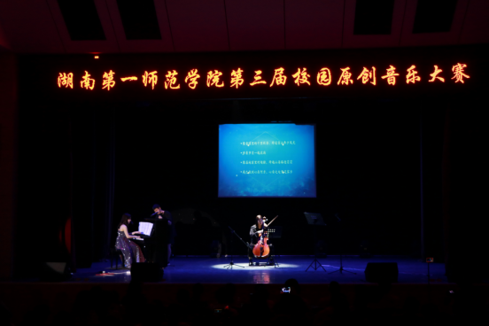 4月18日晚19:00由我校共青团湖南第一师范学院委员会主办、音乐舞蹈学院承办的第三届原创音乐大赛决赛在特立楼演播厅举行。校团委罗祥云副书记、音乐舞蹈学院杨丹副书记、周颖、刘婧、华娟、何忠华老师担任决赛的评委。当晚共11个作品参加决赛,比赛成绩按专业评委70%,大众评审30%的比例计分。决赛结束后诞生冠军一名、亚军两名、季军三名;根据微信投票结果诞生最佳人气奖一名。