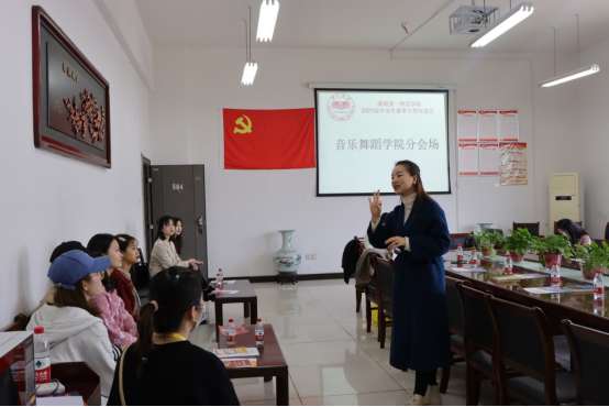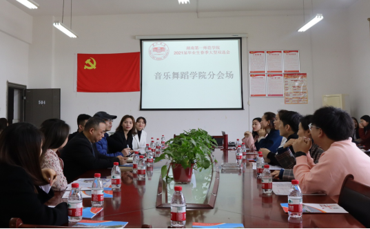 2021年4月9日,我院积极组织毕业生参加由学校招生就业处组织的湖南第一师范学院2021届毕业生春季大型双选会外,还为更好地契合本学院毕业生的求职需求,特邀请了我院多位已毕业且创业有成的学长学姐在音乐舞蹈学院分会场举行了2021届毕业生春季大型双选会。学院党总支书记谭顺来出席招聘会并致欢迎辞,热烈欢迎校友们回母校来帮助学弟学妹们就业。2021届非定向毕业生参加了本次招聘会。