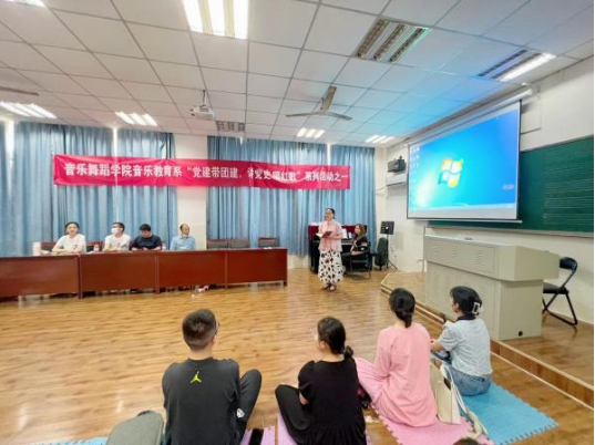 为了充分发挥学生党员的先锋模范作用,不断提高学生团员的宗旨意识和责任意识。6月1日中午,教育系党支部组织22级音本3班、21级884全体同学,在鹤鸣楼北202教室开展了“党建带团建——讲党史、唱红歌”活动。音教系党支部书记王海霞、副系主任李小雷,教师党员朱勇、潘江、刘珊参加本次活动。