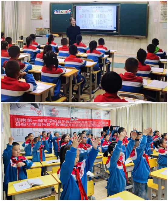 为深入了解2021-2023“新疆县级小学音乐骨干教师提升培训”参训教师的返岗实践应用情况,强化参训教师训后持续跟踪指导,进一步提升培训成效,按照新疆维吾尔自治区教育厅的通知要求,我院于5月7日-5月12日分别到阿克苏地区温宿县第二小学、伊犁哈萨克自治州特克斯县第六小学开展训后跟踪指导活动。此次活动由学院党委书记邹华秀带队,学院党委委员杨淇雅、学院国培班主任朱勇、国培团队成员毕琼文老师参与,特邀一线名师长沙博才金鹰小学刘方老师参加指导活动。